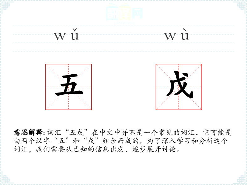 由于“五戊”不是一个常用词汇,它在不同语境下的使用非常有限。在文学、口语或专业领域中,如果没有特定的文化或历史背景,这个词汇可能不会出现。