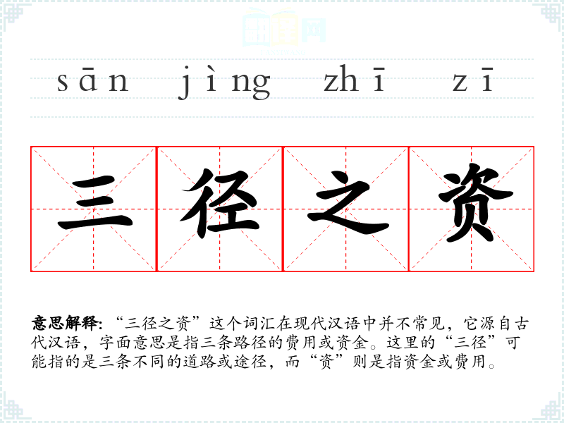 “三径之资”这个词汇在现代汉语中并不常见,它源自古代汉语,字面意思是指三条路径的费用或资金。这里的“三径”可能指的是三条不同的道路或途径,而“资”则是指资金或费用。