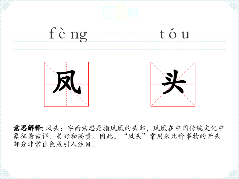 在**文化中,凤凰象征着吉祥、美好和高贵,因此“凤头”也承载了这些积极的寓意。在社会交往中,人们往往希望自己的言行能够给人留下良好的第一印象,这与“凤头”的含义不谋而合。