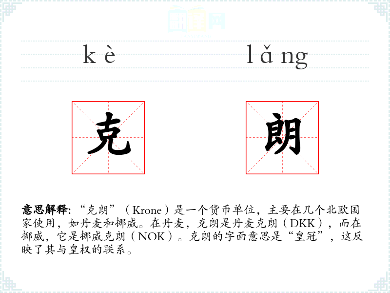 “克朗”(Krone)是一个货币单位,主要在几个北欧国家使用,如丹麦和挪威。在丹麦,克朗是丹麦克朗(DKK),而在挪威,它是挪威克朗(NOK)。克朗的字面意思是“皇冠”,这反映了其与皇权的联系。