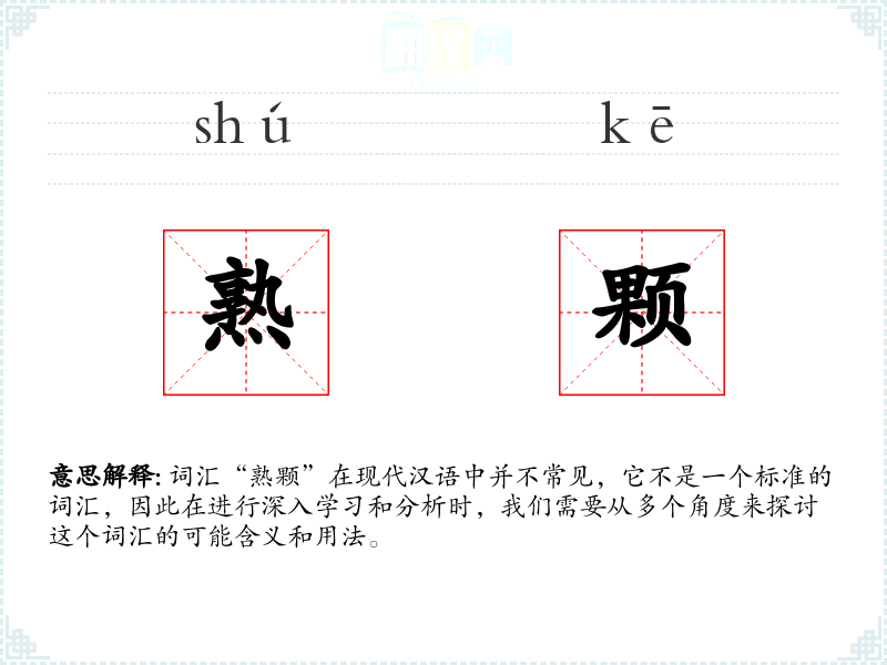 由于“熟颗”不是一个标准词汇,我们无法探讨其词源和历史演变。