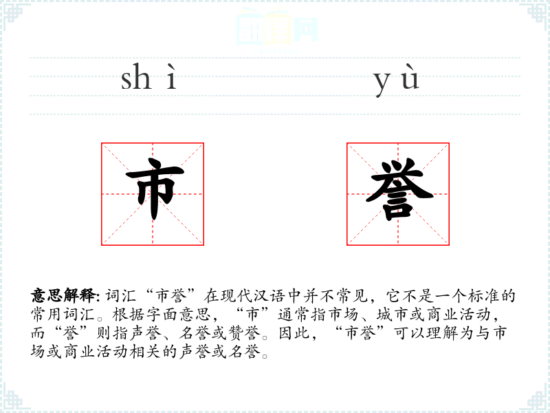 - 词源:“市”和“誉”都是古汉语词汇,组合成“市誉”可能是现代商业语境下的新词汇。