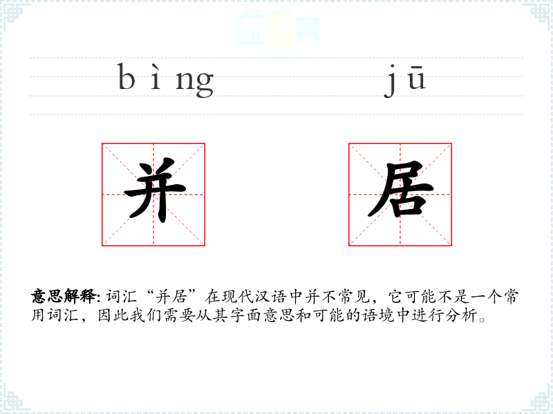 词汇“并居”在现代汉语中并不常见,它可能不是一个常用词汇,因此我们需要从其字面意思和可能的语境中进行分析。