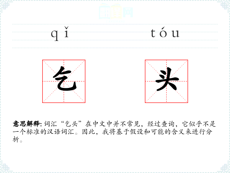 词汇“乞头”在中文中并不常见,经过查询,它似乎不是一个标准的汉语词汇。因此,我将基于假设和可能的含义来进行分析。