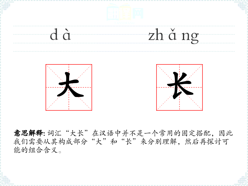 词汇“大长”在汉语中并不是一个常用的固定搭配,因此我们需要从其构成部分“大”和“长”来分别理解,然后再探讨可能的组合含义。