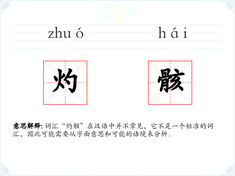 词汇“灼骸”在汉语中并不常见,它不是一个标准的词汇,因此可能需要从字面意思和可能的语境来分析。