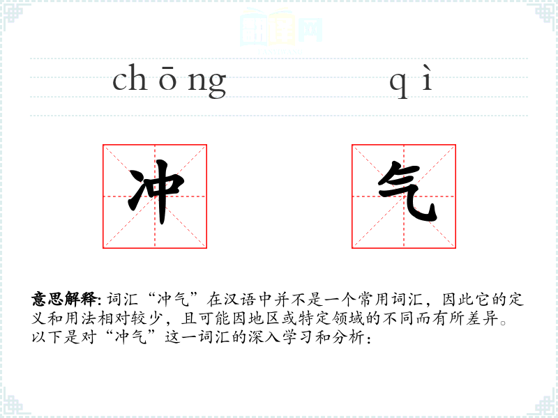 词汇“冲气”在汉语中并不是一个常用词汇,因此它的定义和用法相对较少,且可能因地区或特定领域的不同而有所差异。以下是对“冲气”这一词汇的深入学习和分析: