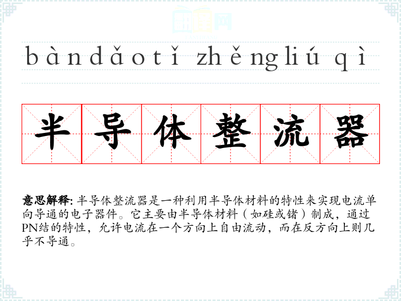 “半导体整流器”一词源于“半导体”和“整流器”两个词汇的结合。半导体是指电导率介于导体和绝缘体之间的材料,而整流器是一种能够转换电流方向的设备。随着电子技术的发展,半导体整流器的材料和设计也在不断进步。