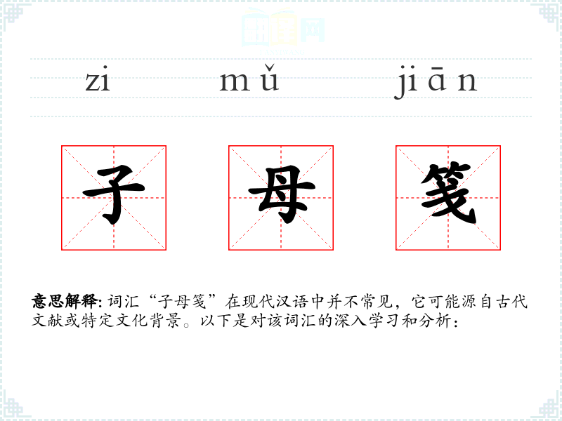 词汇“子母笺”在现代汉语中并不常见,它可能源自古代文献或特定文化背景。以下是对该词汇的深入学*和分析: