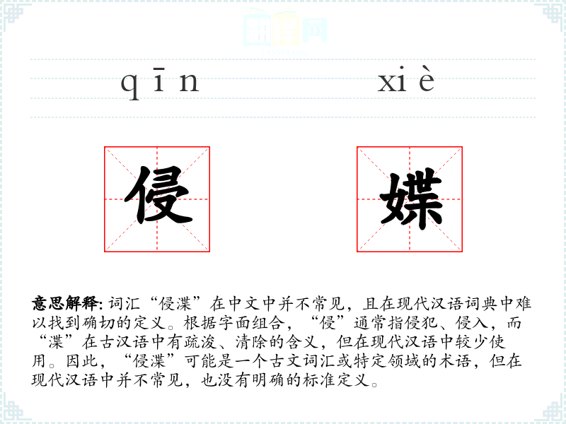 文化与社会背景: 由于“侵渫”不是一个常用词汇,它在特定文化或社会背景中的意义和影响非常有限。