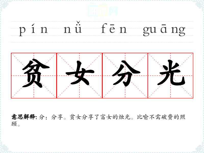 分:分享。贫女分享了富女的烛光。比喻不需破费的照顾。