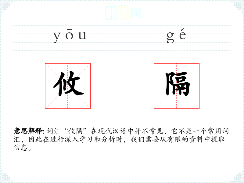 词汇“攸隔”在现代汉语中并不常见,它不是一个常用词汇,因此在进行深入学习和分析时,我们需要从有限的资料中提取信息。