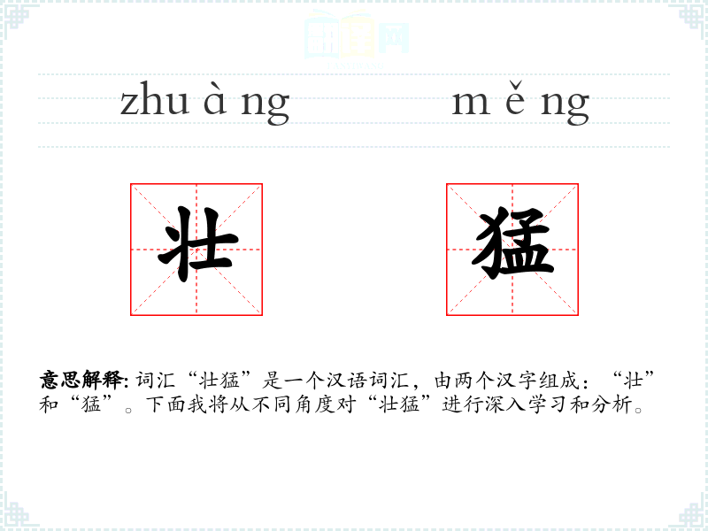 - 重要性:在语言学*和表达中,“壮猛”能够丰富我的词汇量,增强表达的生动性和形象性。