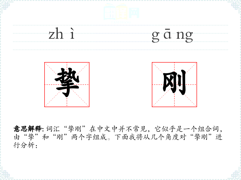 词汇“挚刚”在中文中并不常见,它似乎是一个组合词,由“挚”和“刚”两个字组成。下面我将从几个角度对“挚刚”进行分析: