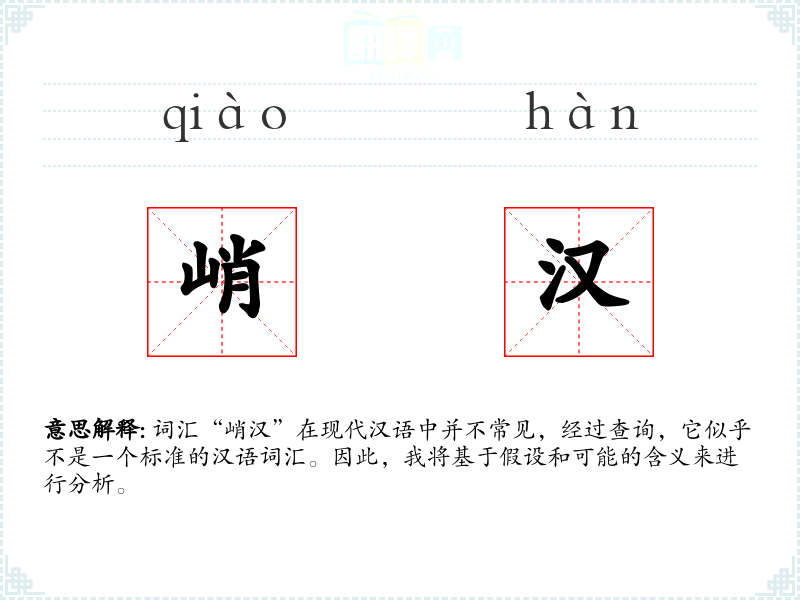 词汇“峭汉”在现代汉语中并不常见,经过查询,它似乎不是一个标准的汉语词汇。因此,我将基于假设和可能的含义来进行分析。