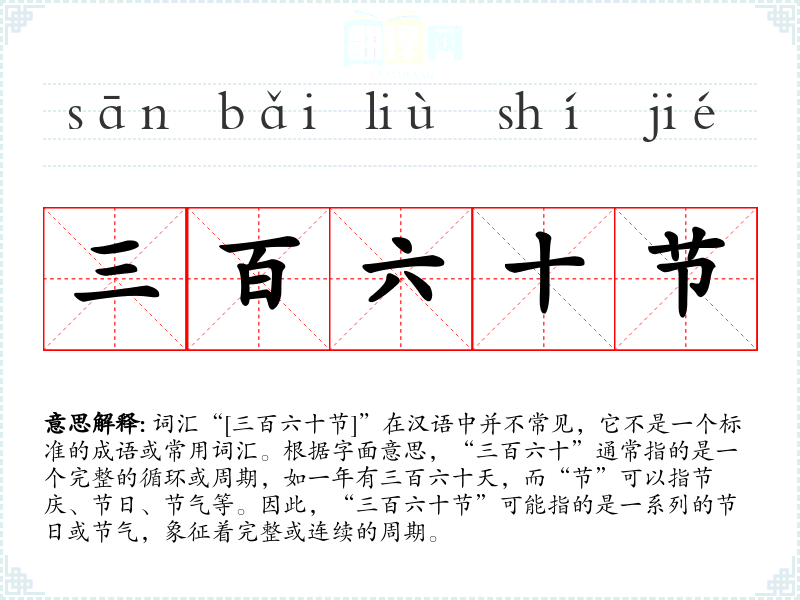 "三百六十节"的意思解释、三百六十节是什么意思由翻译网汉语词典查词提供。