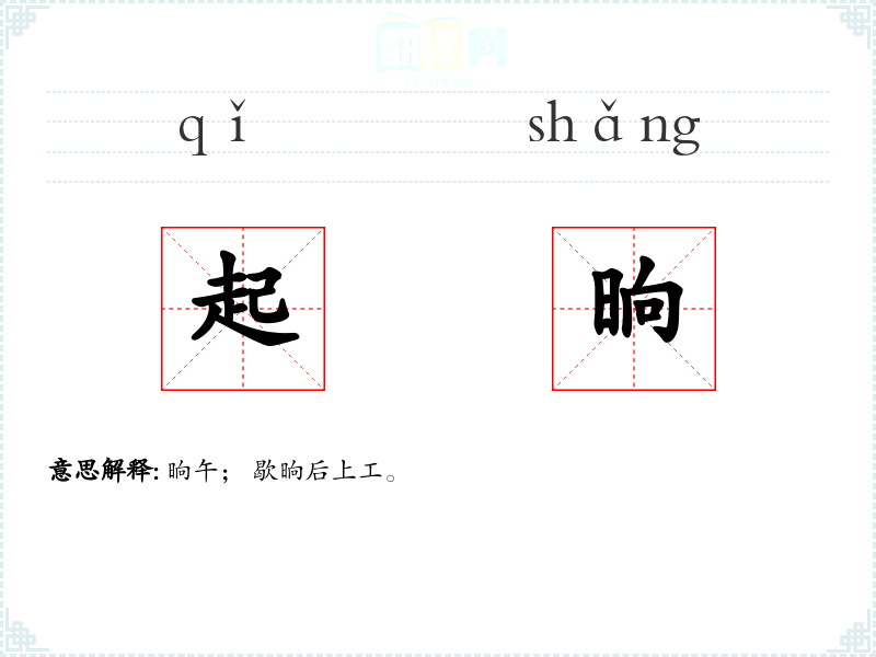 起晌的分字解释