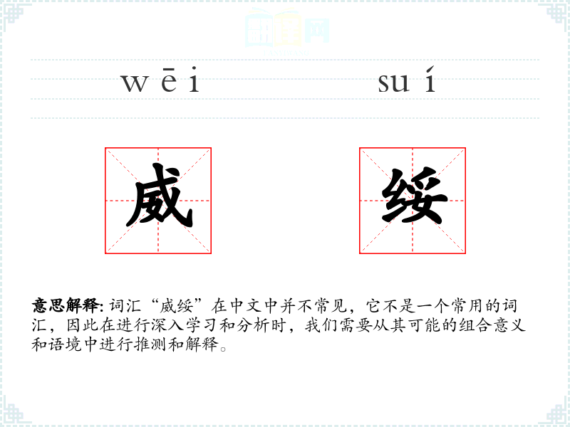 由于“威绥”不是一个常用词汇,其词源和历史演变可能没有详细的记录。它可能是由两个字组合而成,用以表达特定的意义。