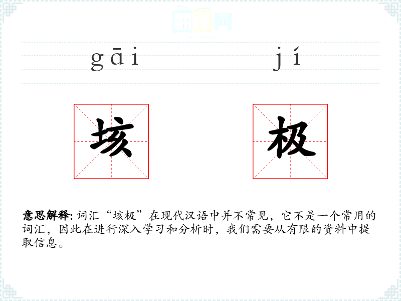 词汇“垓极”在现代汉语中并不常见,它不是一个常用的词汇,因此在进行深入学习和分析时,我们需要从有限的资料中提取信息。