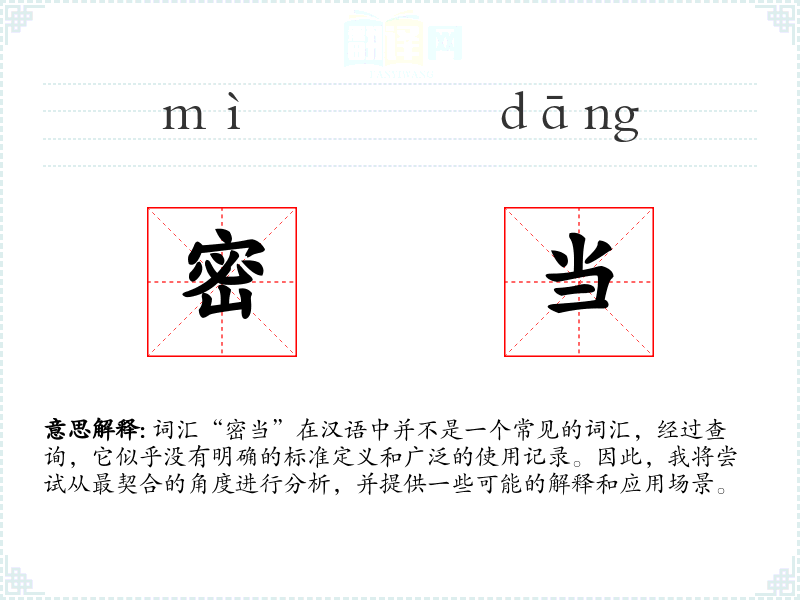 由于“密当”不是一个标准词汇,我们可以尝试从字面上解释: