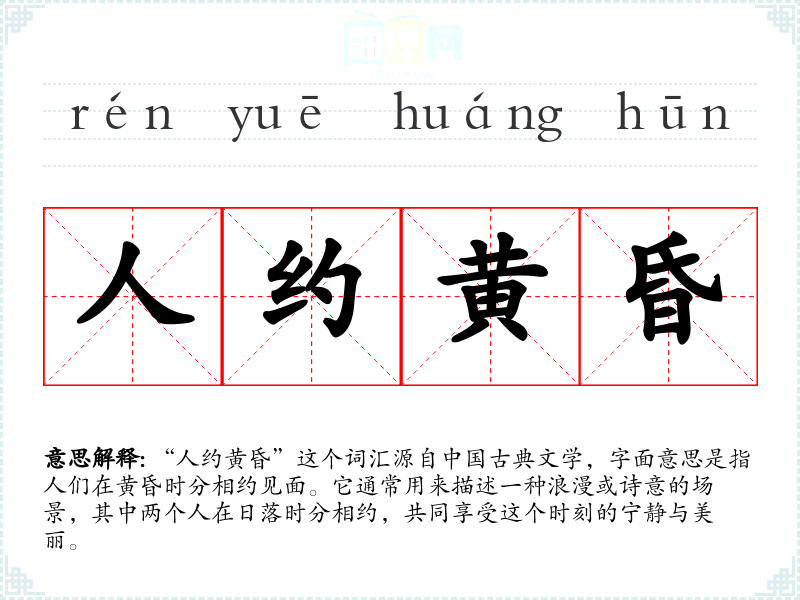 “人约黄昏”这个词汇的词源可以追溯到**古代文学,特别是在诗词中常见。随着时间的推移,这个词汇逐渐被用来描述各种浪漫或诗意的场景,但其核心含义始终围绕着黄昏时分的相约。