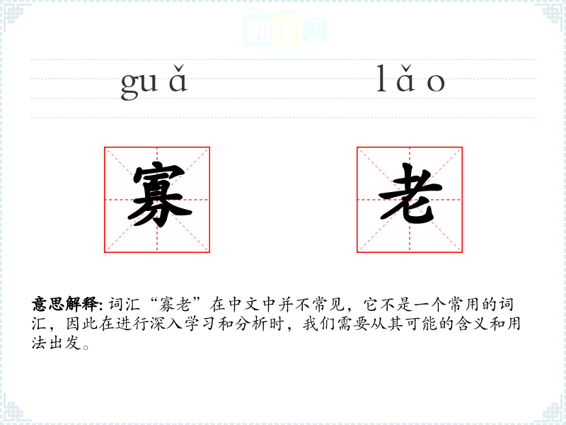 词汇“寡老”在中文中并不常见,它不是一个常用的词汇,因此在进行深入学*和分析时,我们需要从其可能的含义和用法出发。