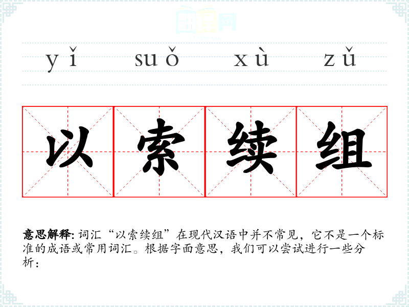 词汇“以索续组”在现代汉语中并不常见,它不是一个标准的成语或常用词汇。根据字面意思,我们可以尝试进行一些分析:
