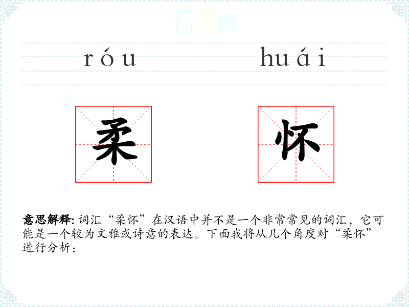 词汇“柔怀”在汉语中并不是一个非常常见的词汇,它可能是一个较为文雅或诗意的表达。下面我将从几个角度对“柔怀”进行分析: