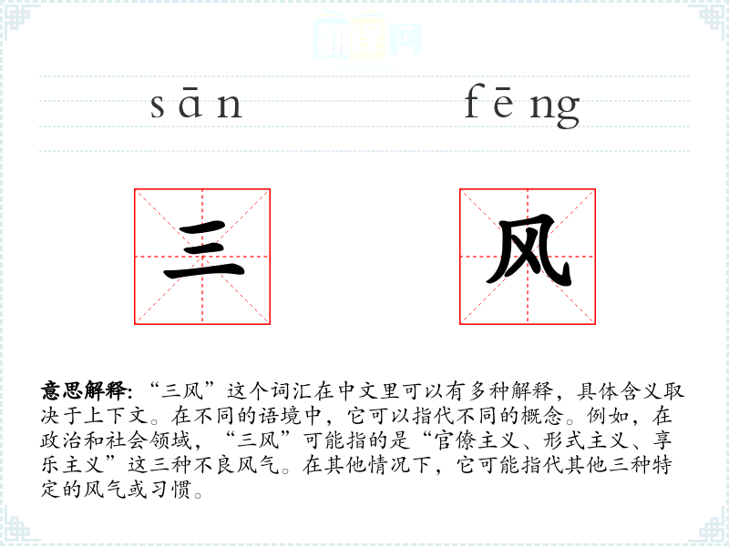 - 口语:在日常对话中,人们可能用“三风”来批评或讨论某些不良的社会风气。