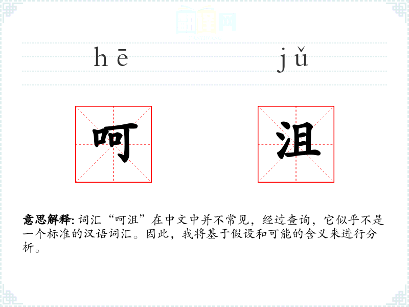 词汇“呵沮”在中文中并不常见,经过查询,它似乎不是一个标准的汉语词汇。因此,我将基于假设和可能的含义来进行分析。