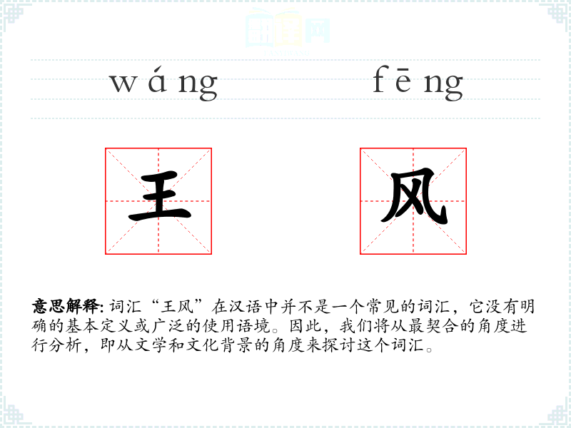词汇“王风”在汉语中并不是一个常见的词汇,它没有明确的基本定义或广泛的使用语境。因此,我们将从最契合的角度进行分析,即从文学和文化背景的角度来探讨这个词汇。