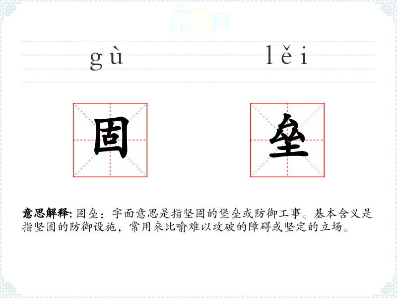 - 联想:想到“固垒”,可能会联想到坚固的城墙、坚定的信念、难以攻破的难题等。