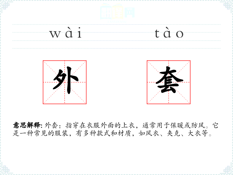 "外套"的意思解释、外套是什么意思由翻译网汉语词典查词提供。
