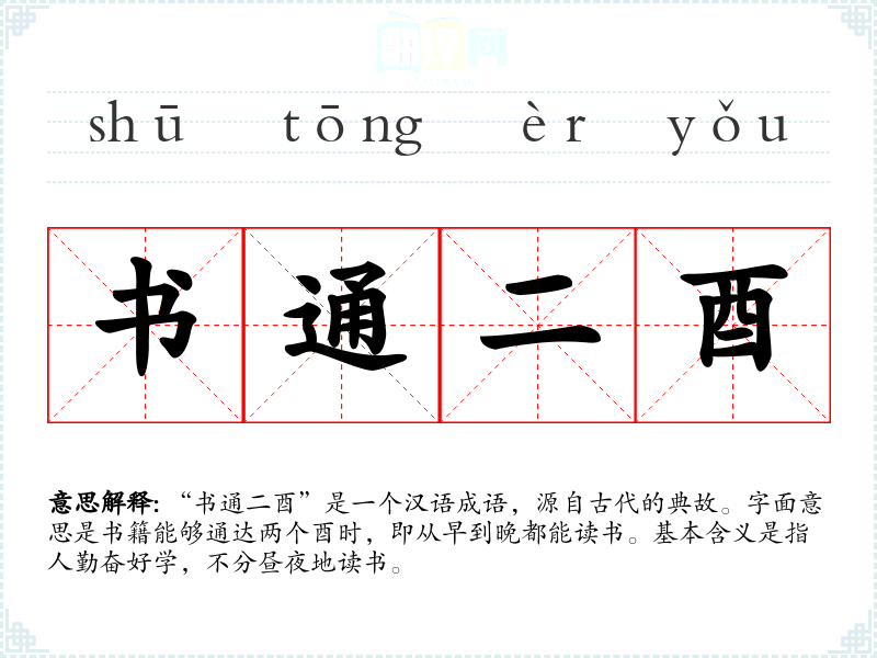 “书通二酉”源自古代的酉时制度,即一天分为十二个时辰,酉时是傍晚五点到七点。这个成语反映了古人对学的重视和对时间的珍惜。随着时间的推移,这个成语的含义逐渐固定,成为形容勤奋学的常用语。