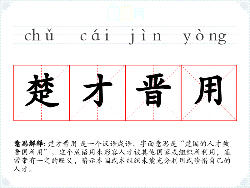 楚才晋用 是一个汉语成语,字面意思是“楚国的人才被晋国所用”。这个成语用来形容人才被其他国家或组织所利用,通常带有一定的贬义,暗示本国或本组织未能充分利用或珍惜自己的人才。
