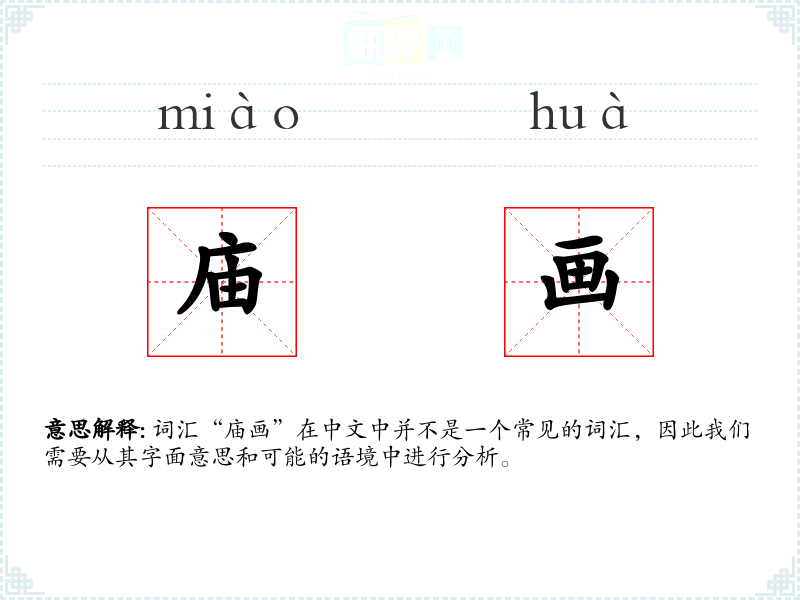 词汇“庙画”在中文中并不是一个常见的词汇,因此我们需要从其字面意思和可能的语境中进行分析。