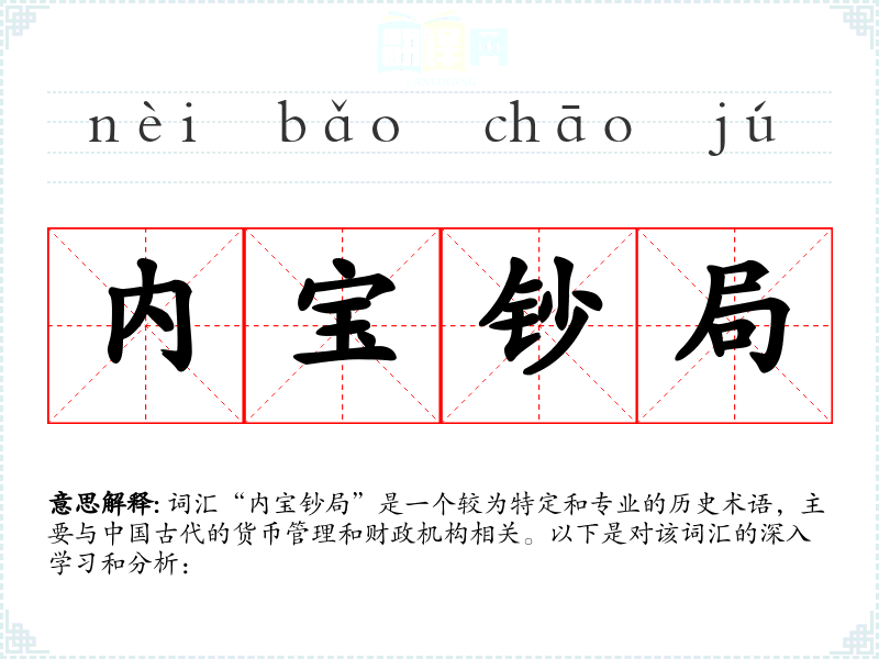 词汇“内宝钞局”是一个较为特定和专业的历史术语,主要与*古代的货币管理和财政机构相关。以下是对该词汇的深入学和分析: