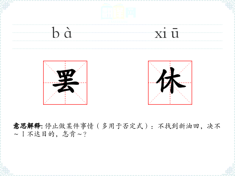 停止做某件事情(多用于否定式):不找到新油田,决不~丨不达目的,怎肯~?