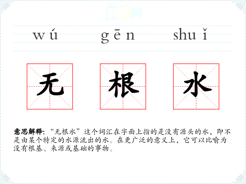 ※ "无根水"的意思解释、无根水是什么意思由翻译网汉语词典查词提供。