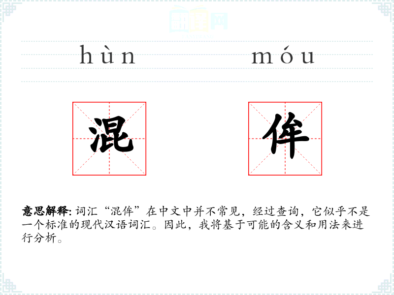词汇“混侔”在中文中并不常见,经过查询,它似乎不是一个标准的现代汉语词汇。因此,我将基于可能的含义和用法来进行分析。