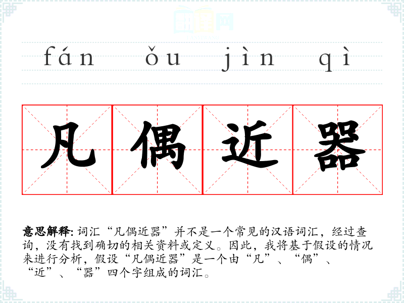 词汇“凡偶近器”并不是一个常见的汉语词汇,经过查询,没有找到确切的相关资料或定义。因此,我将基于假设的情况来进行分析,假设“凡偶近器”是一个由“凡”、“偶”、“近”、“器”四个字组成的词汇。