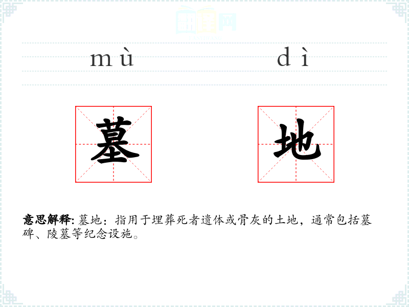 - 理解:墓地是一个多维度的词汇,涉及死亡、纪念、文化和情感等多个层面。