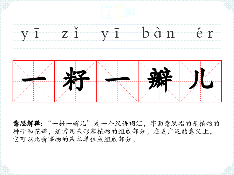 “一籽一瓣儿”是一个汉语词汇,字面意思指的是植物的种子和花瓣,通常用来形容植物的组成部分。在更广泛的意义上,它可以比喻事物的基本单位或组成部分。