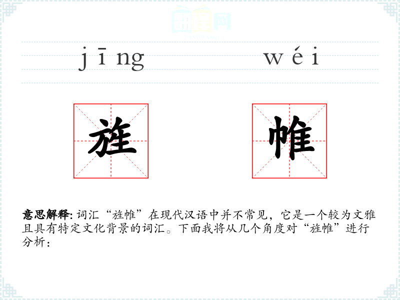词汇“旌帷”在现代汉语中并不常见,它是一个较为文雅且具有特定文化背景的词汇。下面我将从几个角度对“旌帷”进行分析: