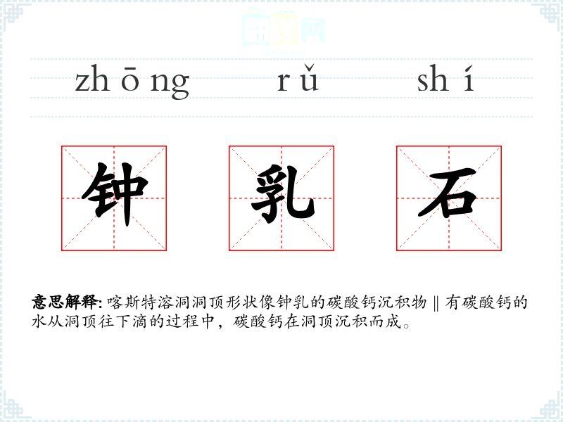 喀斯特溶洞洞顶形状像钟乳的碳酸钙沉积物‖有碳酸钙的水从洞顶往下滴的过程中,碳酸钙在洞顶沉积而成。
