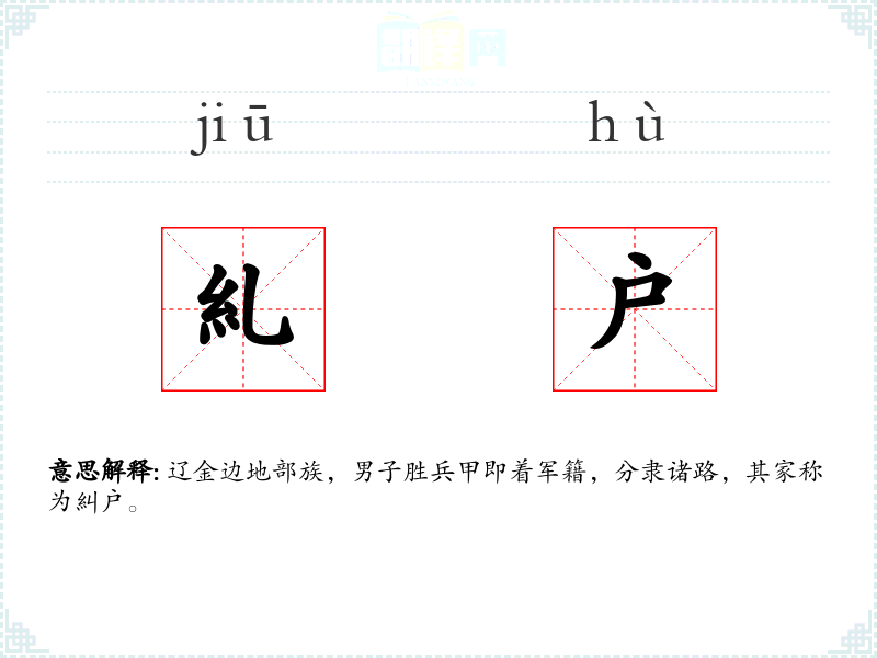 辽金边地部族,男子胜兵甲即着军籍,分隶诸路,其家称为糾户。