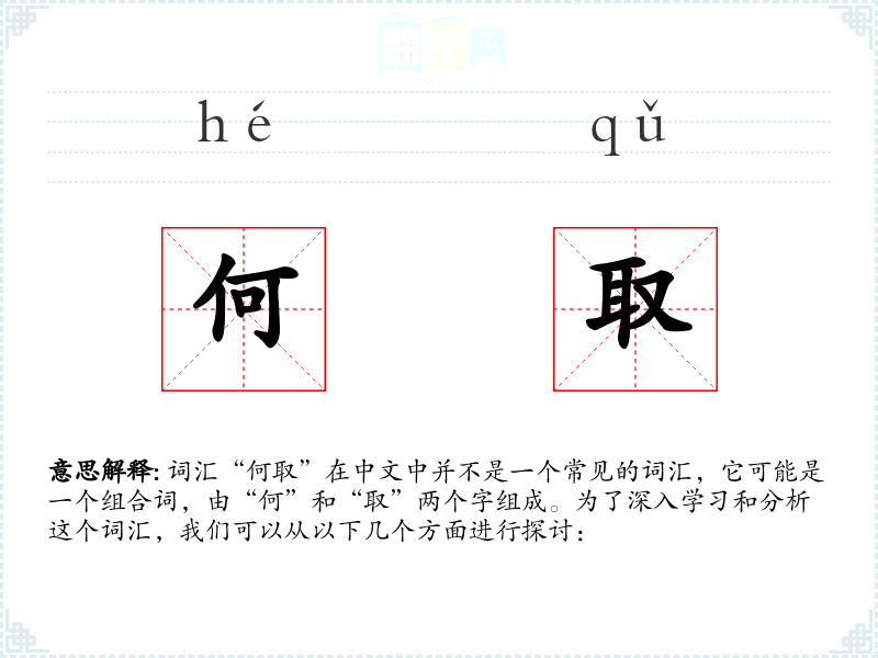 词汇“何取”在中文中并不是一个常见的词汇,它可能是一个组合词,由“何”和“取”两个字组成。为了深入学*和分析这个词汇,我们可以从以下几个方面进行探讨: