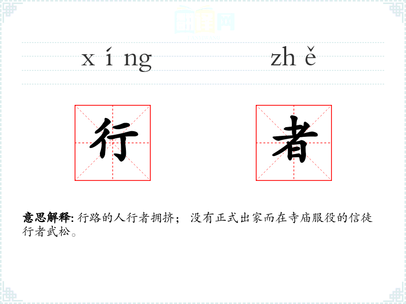 行路的人行者拥挤; 没有正式出家而在寺庙服役的信徒行者武松。