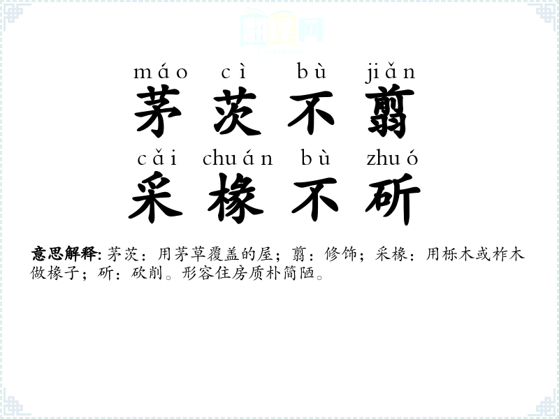 茅茨不翦,采椽不斫的分字解释
