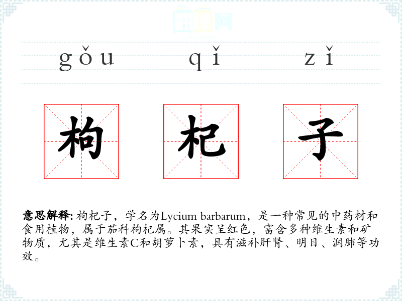 "枸杞子"的意思解释、枸杞子是什么意思由翻译网汉语词典查词提供。